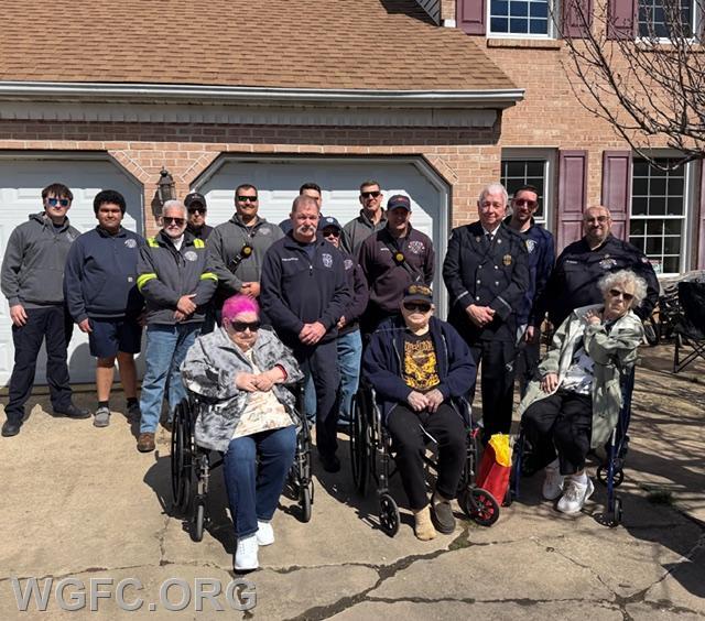 | First responders from the West Grove Fire Company staged a small parade in New London Township Sunday afternoon passing by the 90th birthday celebration for Past Chief W. Forrest Hammond.