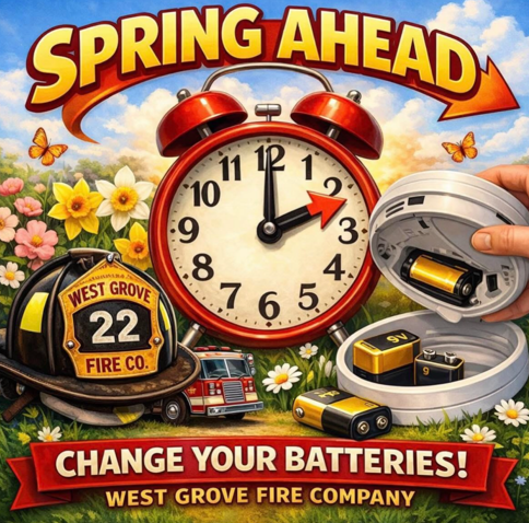 Welcome to daylight savings time from your friends at the West Grove Fire Company. |