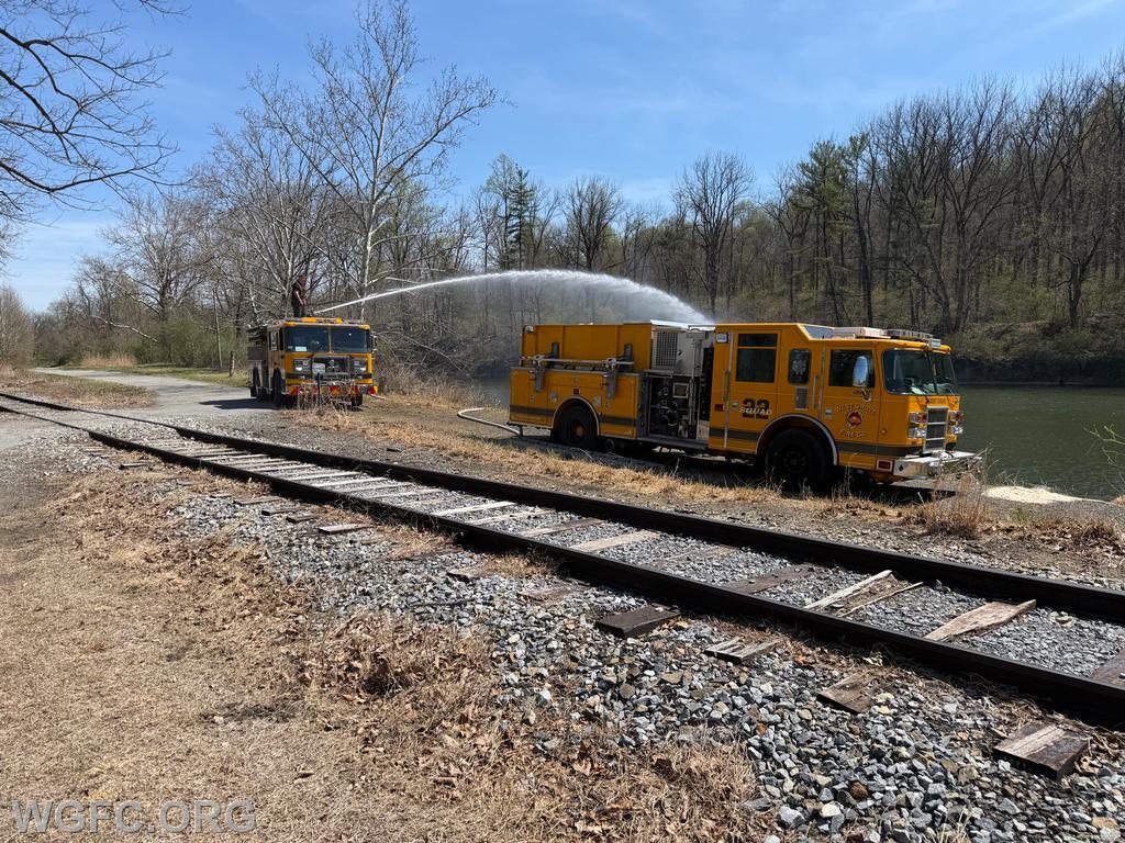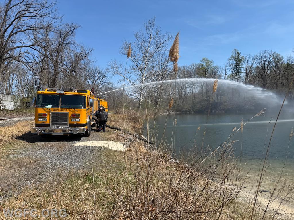 Crews utilized favorable weather conditions this afternoon to conduct training at the London Grove quarry. Crews practicing apparatus operator qualification practiced drafting and supplying a master stream. The training session was interrupted by a call for a brush fire, but valuable experience was still gained. Appreciation is extended to London Grove Township for allowing use of the quarry.